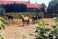 Auf dem Hof verbringen die Pferde die meiste zeit auf den Weiden. Die können sie von ihren Boxen aus betrehten. (Wenn man will kann man die verbindungs Tür, zuwischen Weide und Box, auch zu machen) Es gibt drei Reitplätze für Dressur, Springen und anderes. Außerdem gibt es noch eine Reithalle. Die Fohlen werden von Anfang an mit auf die Koppel genommen. Außerdem gibt es noch ein paar Quwarabtäneboxen. Dort stehen nur die kranken Pferde, die nicht auf die Koppel dürfen und die Stuten, die ihr Fohlen bald bekommen.